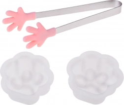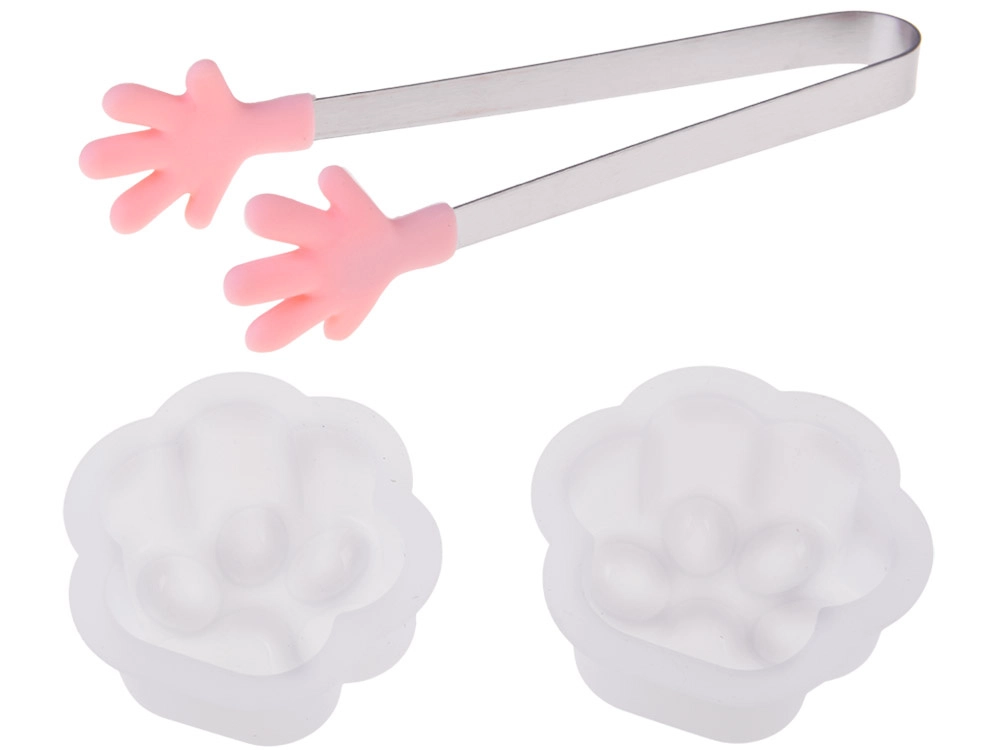 Pinzette metalliche con estremità in silicone morbido e stampini a forma di zampa aiutano a afferrare con precisione e modellare le piccole decorazioni.