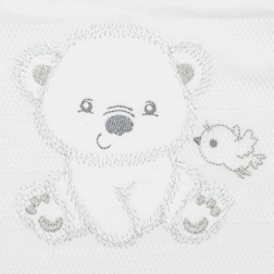 Il set è fornito in una eco confezione regalo, perfetta anche come splendido dono per i neo-genitori. Il cotone 100% assicura comfort, buona assorbenza e facile manutenzione. Il colore bianco neutro e i dolci motivi di orsetto e uccellino lo rendono una scelta universale per bambine e bambini.