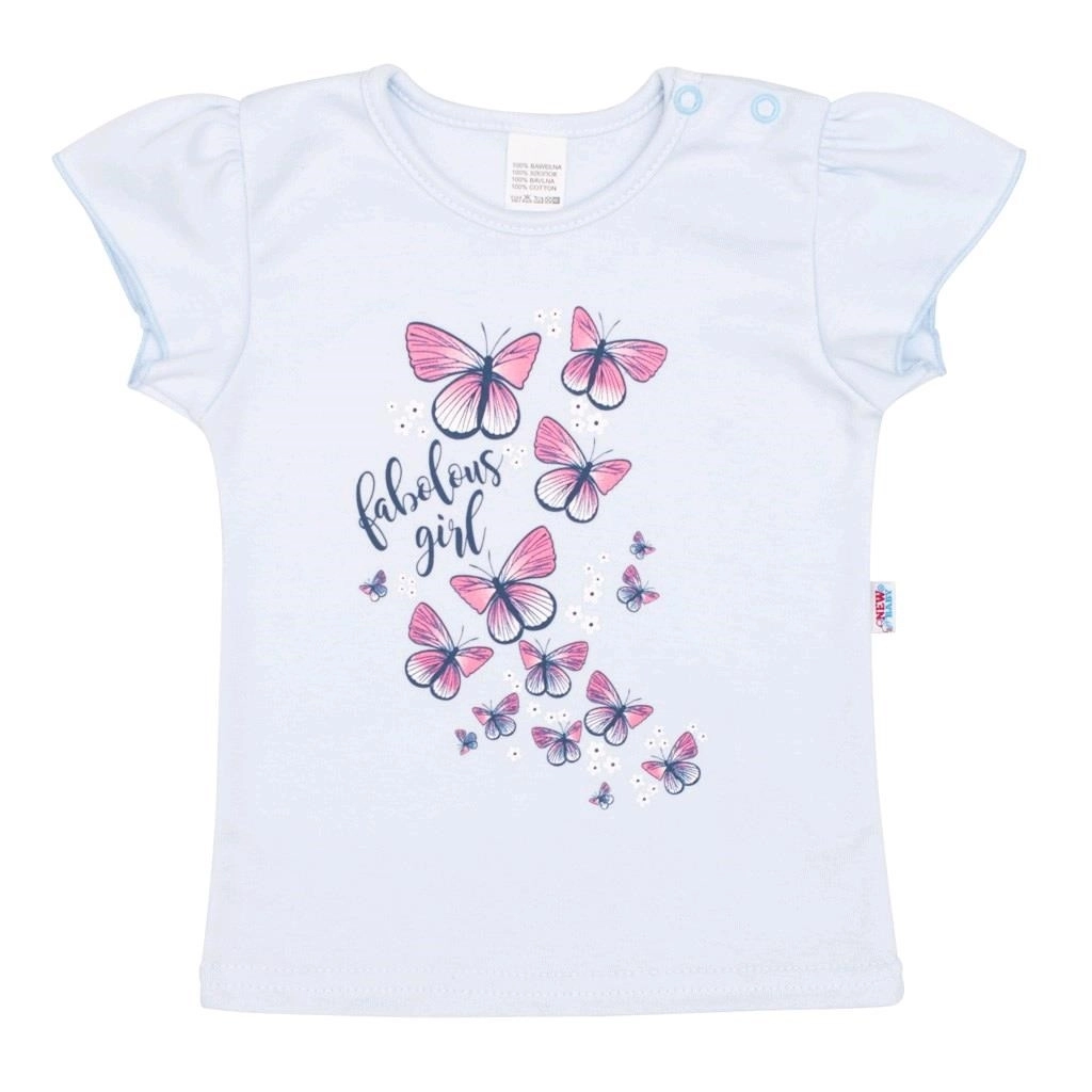 Scopri il set da bambina New Baby Butterflies, morbido e confortevole – ideale per l’uso quotidiano e per le occasioni speciali. La maglietta in morbido 100% cotone con maniche arricciate è impreziosita da dolci farfalle e, grazie ai bottoncini a pressione sulla spalla, si indossa con facilità. La gonna blu scuro con ampia fascia in vita non comprime il pancino e il volant dona un look giocoso all’outfit.