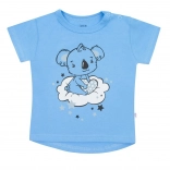 Dolce pigiama estivo per bambini in morbido 100% cotone di colore azzurro chiaro, con un delicato motivo di una koala su una nuvoletta. Il set è composto da una maglietta a maniche corte e pantaloncini con stampa all-over. Le pratiche patte con bottoncini a pressione sulla spalla facilitano la vestizione e la vita elastica dei pantaloncini è delicata sul pancino del bebè.