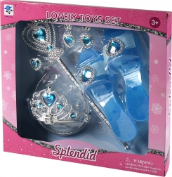 Questo elegante set per piccole principesse illuminerà ogni travestimento. La combinazione azzurro-argento, le pietrine “scintillanti” e i materiali leggeri garantiscono comfort e tanto divertimento nei giochi di ruolo. Ottima scelta per carnevale, festa di compleanno o teatrino magico nella cameretta.