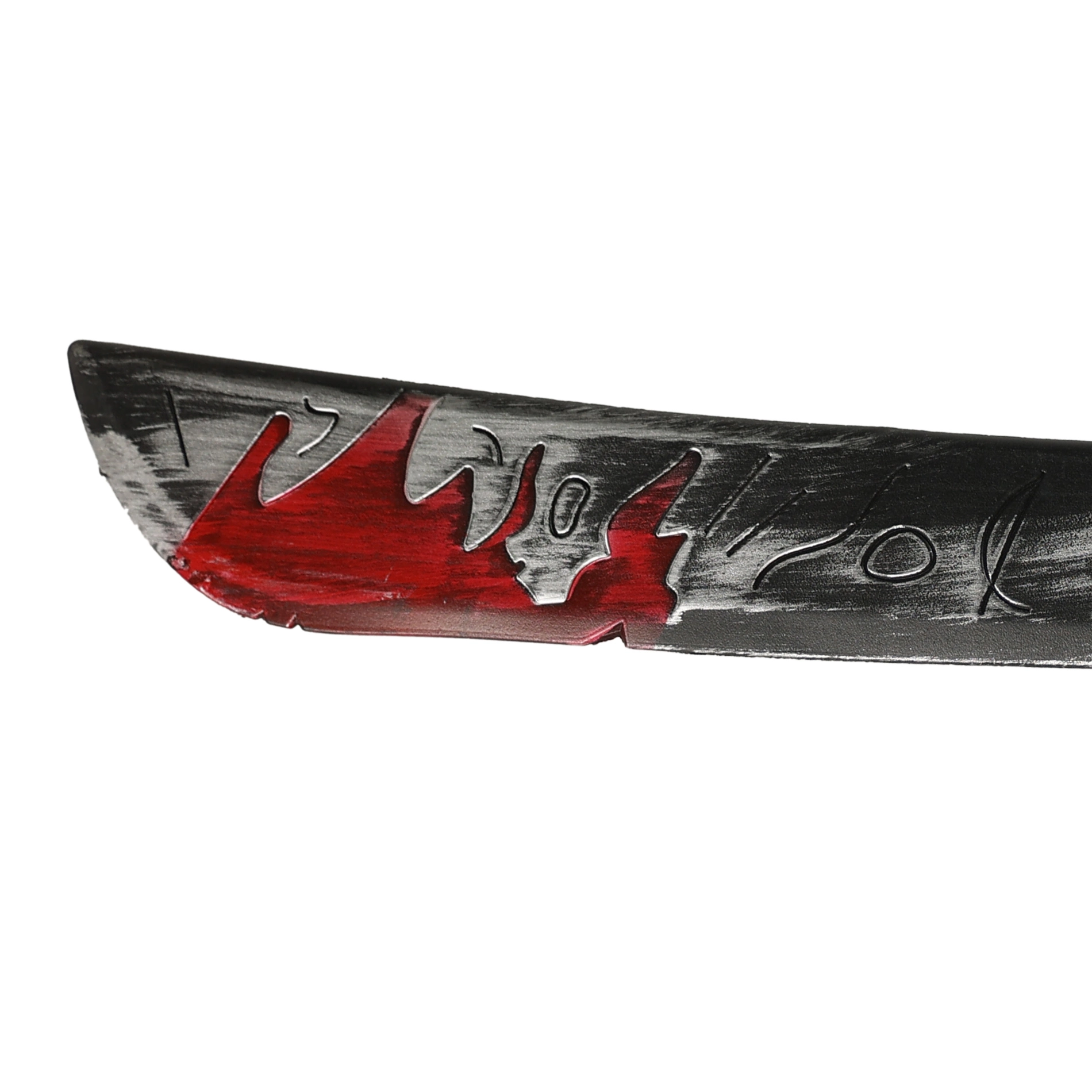 - Aspetto realistico – lama grigia “metallica” con effetto sangue e incisioni decorative.