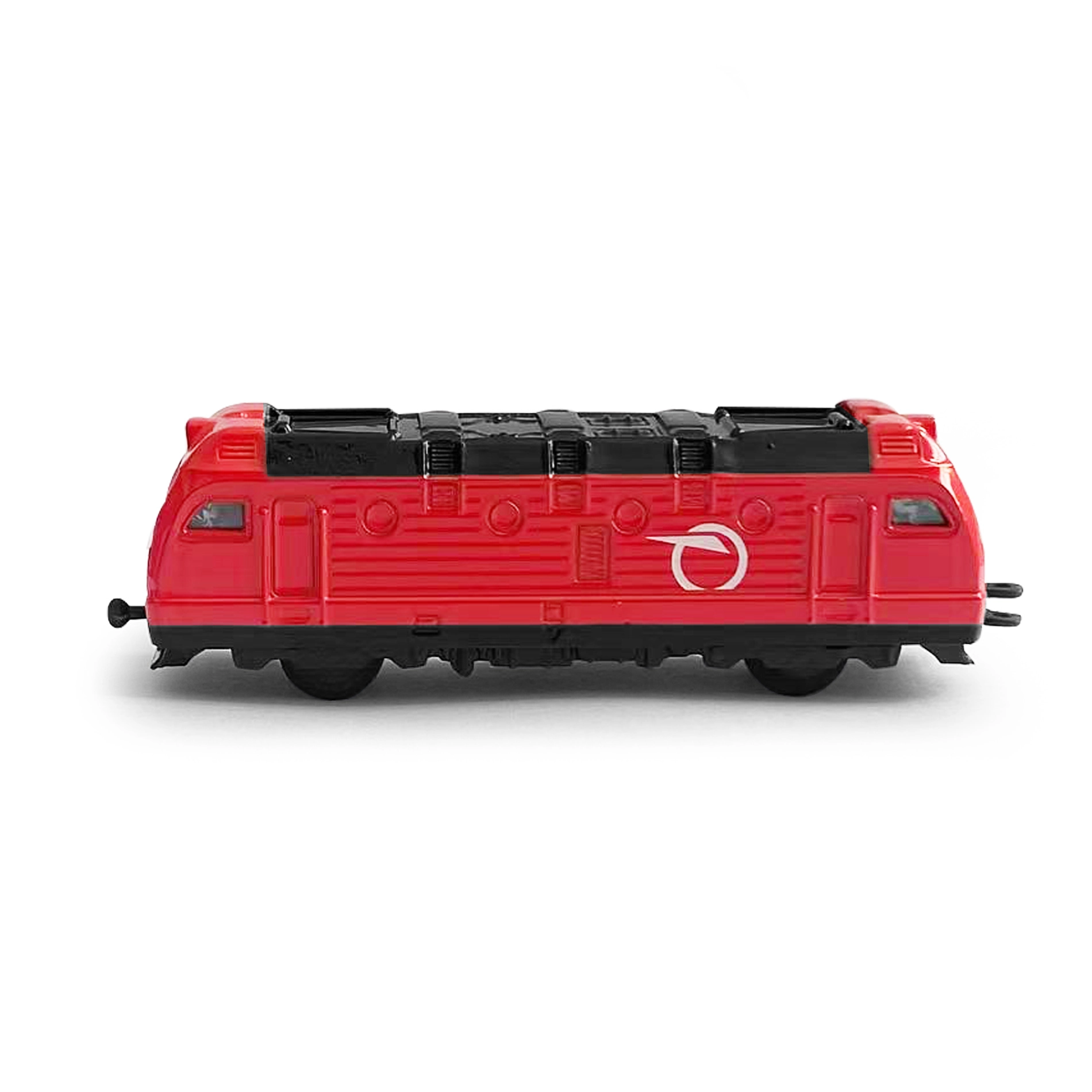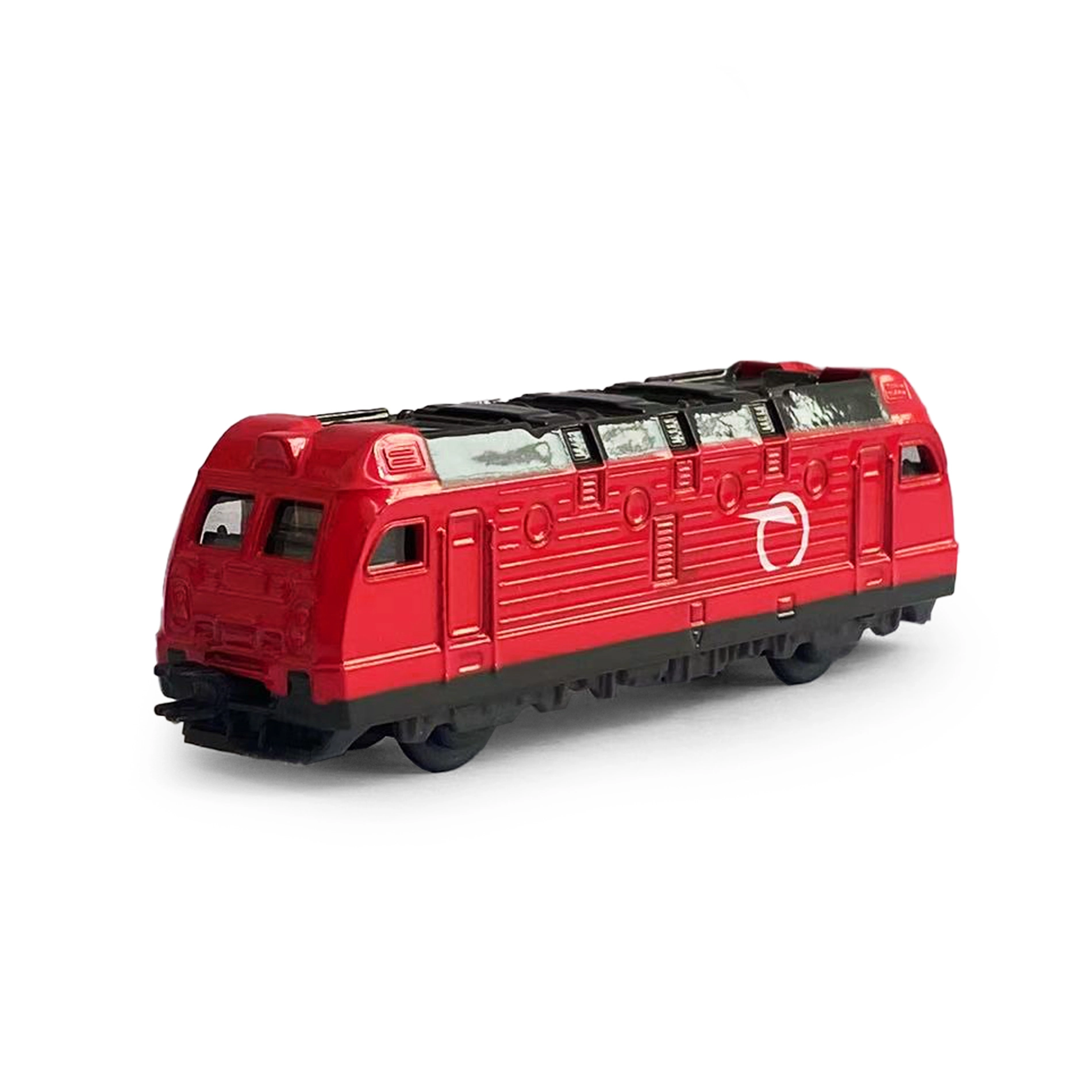 Questa locomotiva in metallo, realizzata con cura e lunga circa 9 cm, si distingue per il design dettagliato, gli elementi a contrasto e la livrea ispirata alla Železničná spoločnosť Slovensko. Grazie alla ruota libera, la marcia è fluida e silenziosa su superfici piane e sui binari da gioco con scartamento di 1,2 cm.