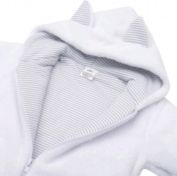 Il cappuccio con orecchiette protegge dal freddo e la fodera a righe in 100% cotone è delicata sulla pelle sensibile del neonato.