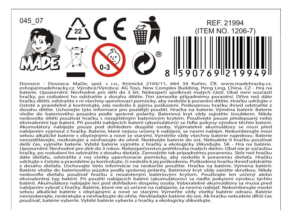 La confezione contiene un giocattolo in plastica in una pratica scatola. Per l’avvio sono necessarie 3 batterie tipo AAA (non incluse).
