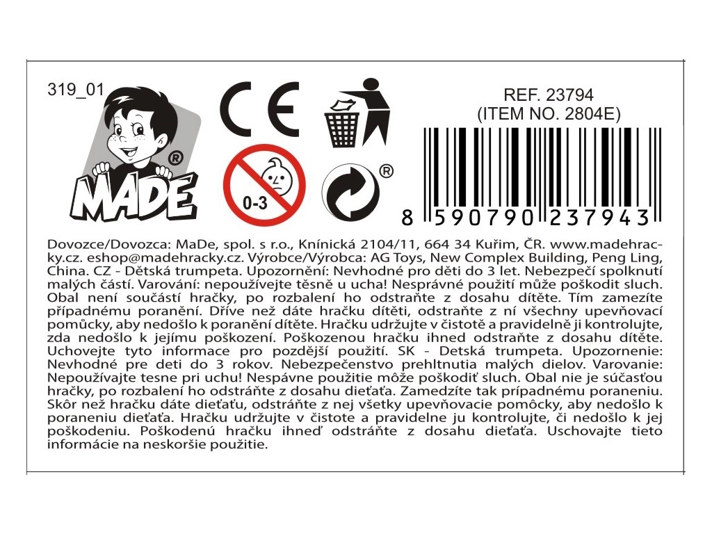 Questa trombetta per bambini è lo strumento musicale ideale per i più piccoli. Grazie alle dimensioni compatte e alla struttura in plastica leggera, è facile da usare, sicura e abbastanza resistente per il gioco quotidiano. Favorisce lo sviluppo naturale dell’udito, del senso del ritmo e della motricità, offrendo tanto divertimento musicale senza bisogno di batterie.