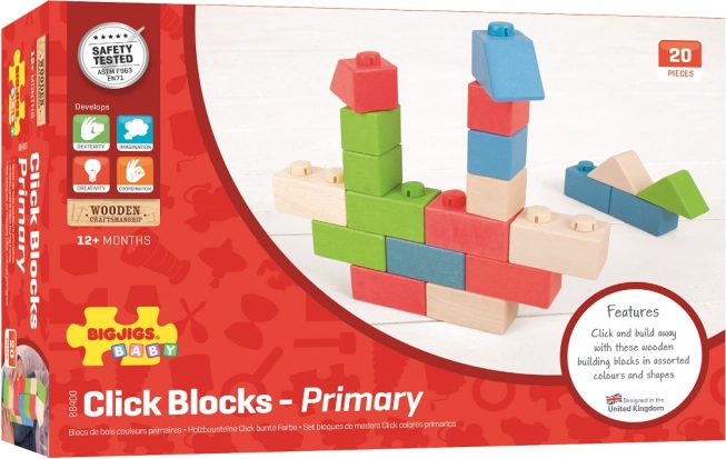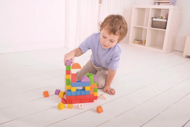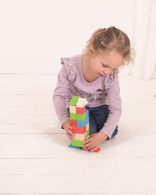 La costruzione in legno Bigjigs Baby offre una combinazione unica di blocchi di legno e connettori in plastica, permettendo di creare costruzioni solide e stabili. I blocchi, in varie forme e colori, sono ideali per le mani dei bambini.