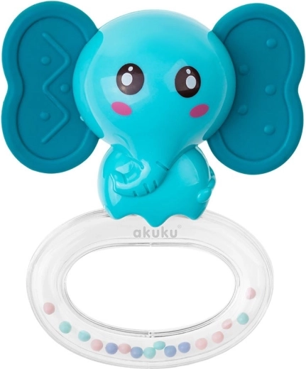 Il massaggiagengive in silicone con sonaglio Akuku elefante combina un delicato massaggio delle gengive con il piacevole suono del sonaglio, che motiva il bambino al gioco e sviluppa la percezione uditiva. La forma ergonomica e la struttura leggera facilitano la presa e supportano lo sviluppo della motricità fine.