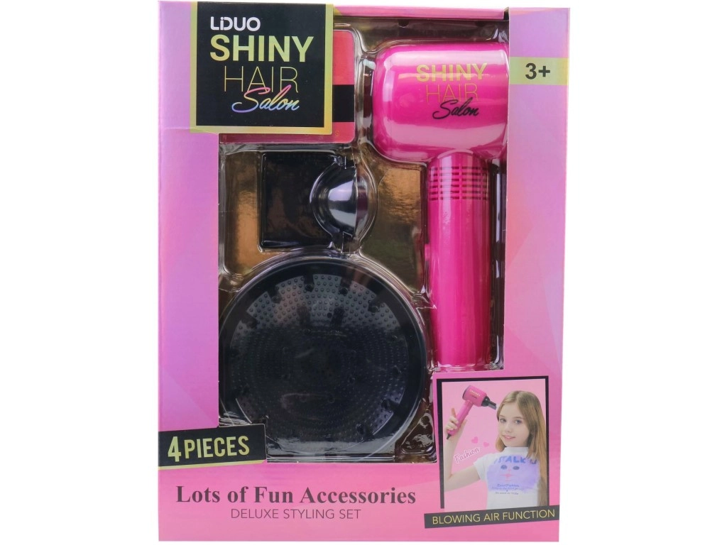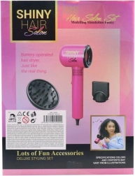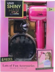 Il set per capelli con asciugacapelli per bambini è un fantastico giocattolo per piccole parrucchiere dai 3 anni in su. Offre un divertimento sicuro, è realizzato in plastica di qualità e grazie alle dimensioni compatte è facile da impugnare. Funziona con 3 batterie AAA (non incluse).