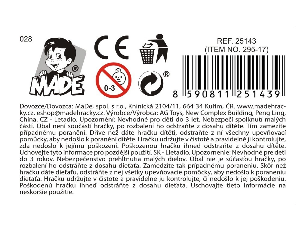 L’aereo è pronto all’uso subito dopo l’apertura, non richiede batterie ed è ideale per il gioco in casa e all’aperto. Il sicuro confezionamento in blister protegge il prodotto durante il trasporto e lo rende un ottimo regalo.
