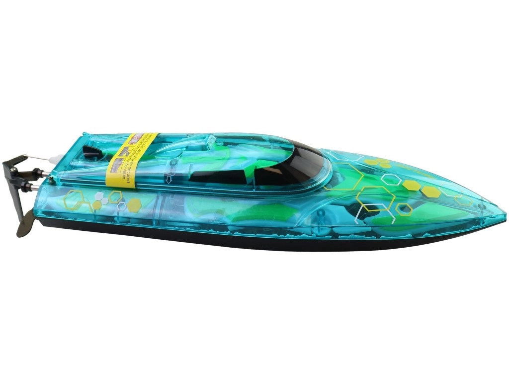 Questa robusta barca RC è progettata per una navigazione veloce e divertente su stagni, piscine o acque calme. Lo scafo in plastica di qualità garantisce sufficiente robustezza e un peso ridotto per movimenti agili e un controllo facile. Grazie al design accattivante, i bambini vivranno tante avventure ricche di azione sull’acqua.