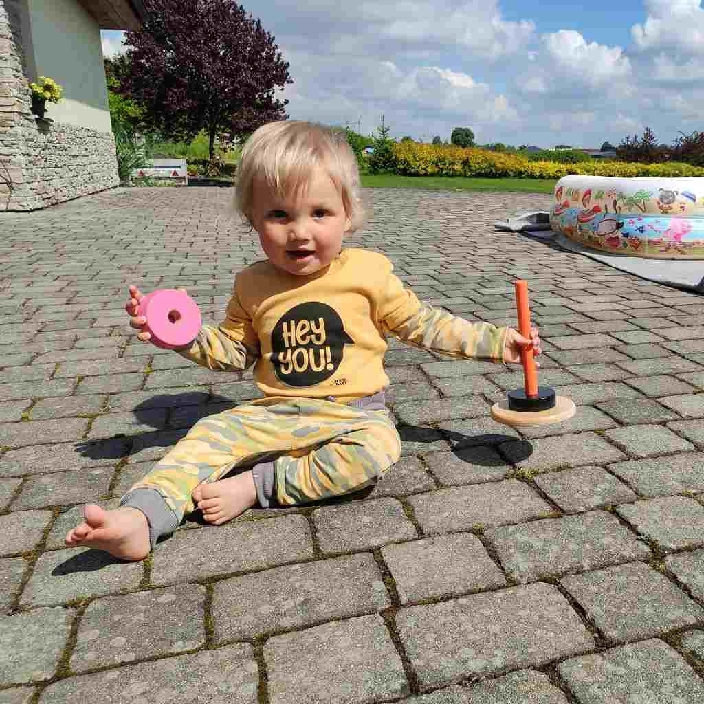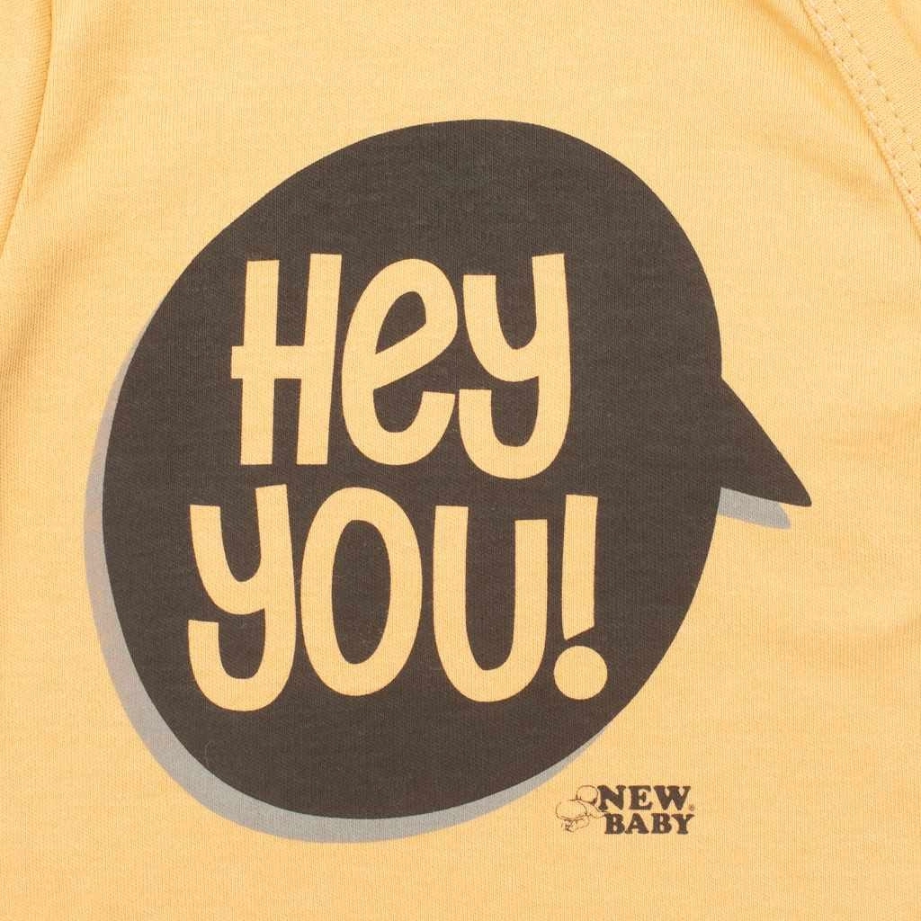 La maglietta per bambini NEW BABY With Love in colore senape è la scelta ideale per l’uso quotidiano. Il morbido e traspirante 100% cotone garantisce il massimo comfort ed è adatto anche alle pelli sensibili. I bordi grigi a contrasto e la simpatica scritta Hey You! conferiscono alla maglietta un look moderno.