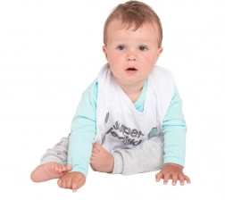 Questo bavaglino per bambini del marchio NEW BABY è realizzato in 100% cotone morbido e di qualità, delicato sulla pelle sensibile dei più piccoli. La struttura a doppio strato protegge efficacemente i vestiti dallo sporco durante la pappa e le bevande.