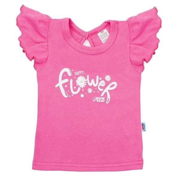 Delizioso set per neonati a 2 pezzi NEW BABY Happy Flower in colore rosa scuro, che unisce comfort e stile. Include una maglietta con maniche a balza e scritta Happy Flower e pantaloncini/jogger con stampa floreale. Grazie al 100% cotone, il set è morbido, traspirante e ideale per la pelle sensibile dei bambini.