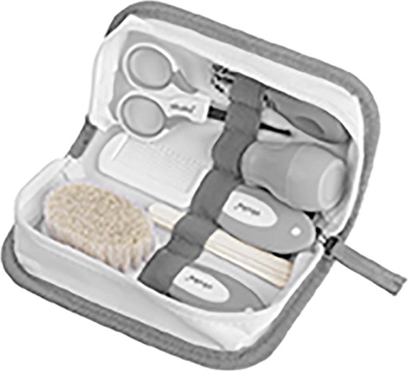 - Forbicine con punte arrotondate, tagliaunghie, limetta per unghie, spazzola con setole naturali, pettine con manico antiscivolo, aspiratore nasale con punta morbida