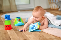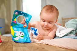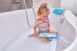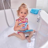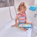 La struttura leggera galleggia sull’acqua ed è sicura per giocare nella vasca e in piscina. I bambini sfogliano facilmente e scoprono colori e forme.