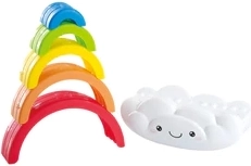 Questo adorabile puzzle a forma di arcobaleno con nuvoletta è il giocattolo ideale per lo sviluppo delle prime abilità. Grazie ai colori vivaci attira naturalmente i bambini e li motiva a scoprire forme e dimensioni. Impilando gli archi allenano la presa, la coordinazione mano-occhio e la pazienza.