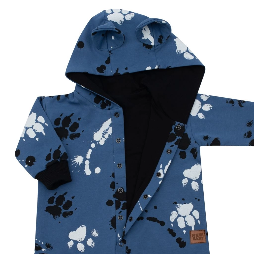 Dolce e pratica tutina New Baby Paw in morbido cotone con una percentuale di elastan per il massimo comfort del bebè. Ha cappuccio con orecchiette, stampa all-over per bambini e chiusura con bottoncini a pressione per tutta la lunghezza per facilitare vestizione e cambio. La fodera in morbido cotone garantisce migliore comfort termico, ideale per primavera e autunno.