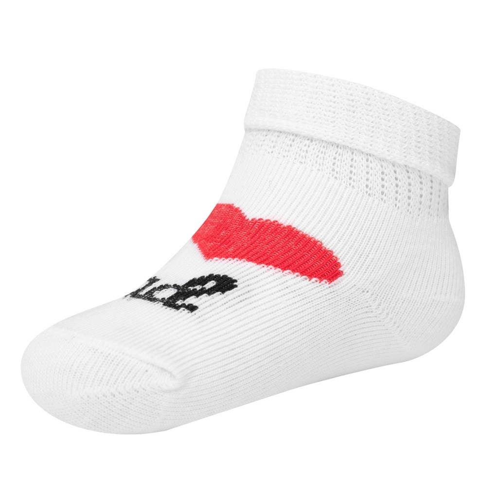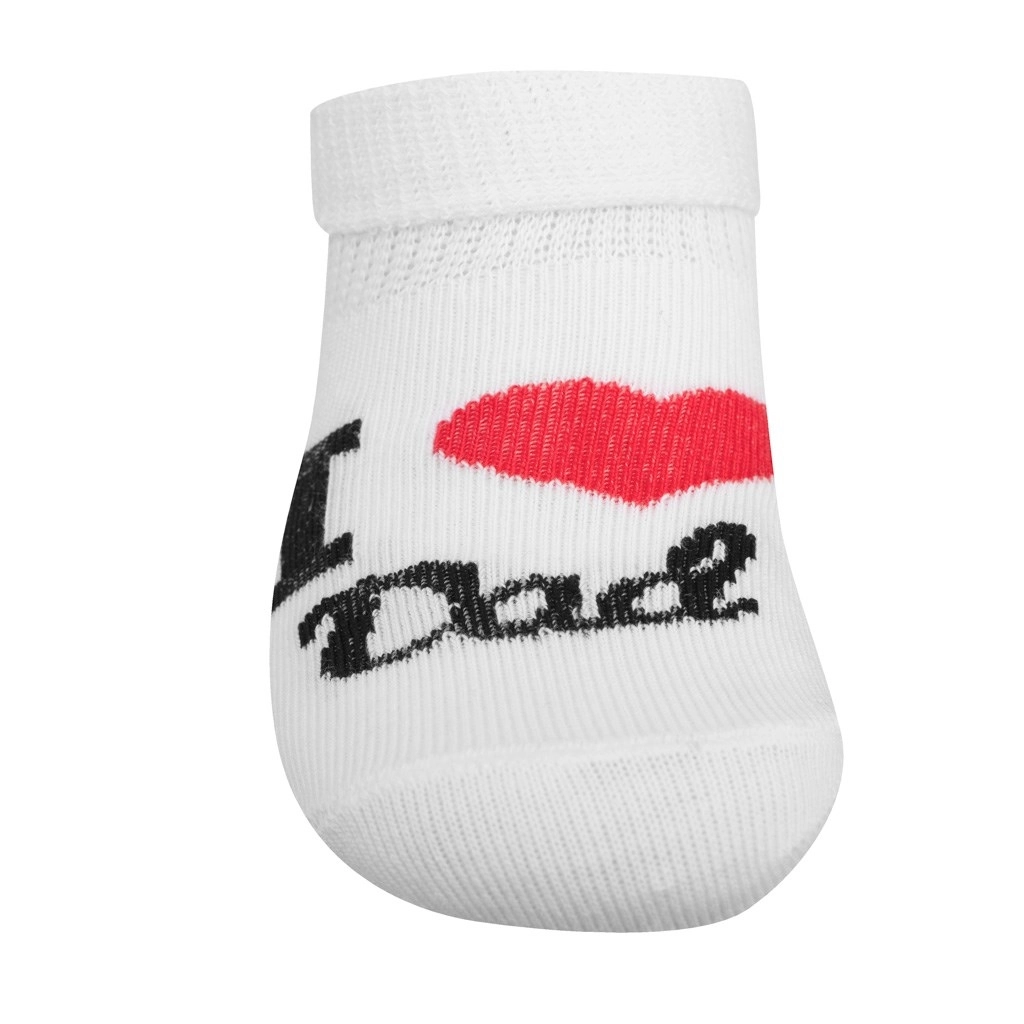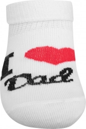 Calzini per bambini New Baby morbidi e traspiranti con motivo I Love Mum and Dad, perfetti per il comfort quotidiano. Grazie al bordo elastico non stringono, mantengono forma e colori e sono ideali per le giornate più calde.