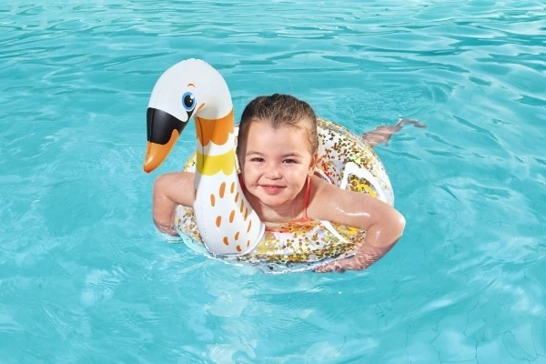 L’anello gonfiabile con motivo cigno colpisce per il design scintillante e i colori vivaci che i bambini adorano. È realizzato in PVC resistente ed è progettato per sopportare gonfiaggi e sgonfiaggi ripetuti. La pratica valvola di sicurezza impedisce la fuoriuscita indesiderata dell’aria.