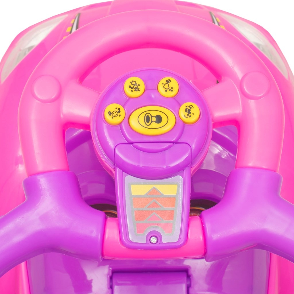 Pratico e sicuro passeggino senza pedali 3in1 per i più piccoli in colore rosa. Offre asta di guida, protezioni laterali di sicurezza, poggiapiedi rimovibili e vano portaoggetti sotto il sedile. Grazie al volante con pannello musicale e clacson la guida è divertente e aiuta a sviluppare le abilità motorie dei bambini.