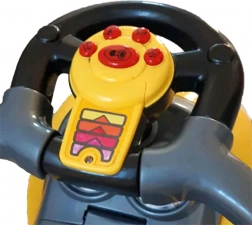 Per un comfort maggiore, il veicolo è dotato di poggiapiedi inferiori e protezioni laterali di sicurezza, facilmente rimovibili. Il volante con pannello musicale e clacson aumenta il divertimento e favorisce lo sviluppo della motricità. Sotto il sedile trovi un pratico vano per piccoli oggetti e giocattoli.