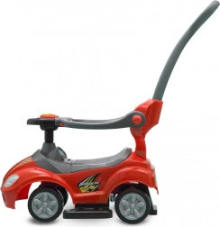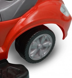 La tricicletta/spingimacchina 3 in 1 BABY MIX Mega Car in colore rosso combina le funzioni di correpassi, girello e macchinina con asta di guida. Offre una struttura sicura, una costruzione stabile in plastica di qualità, poggiapiedi rimovibili, protezioni laterali di sicurezza e volante con pannello musicale e clacson. Sotto il sedile è presente un pratico vano portaoggetti per i giocattoli.
