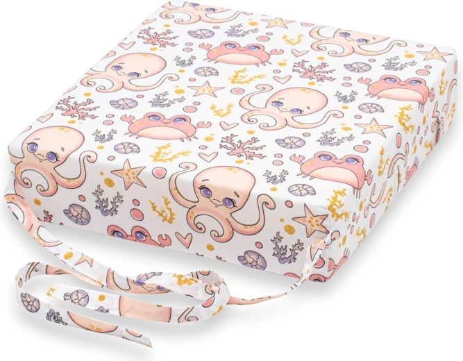 Pratico rialzo per bambini New Baby Basic con motivo polpo che garantisce comfort e sicurezza durante i pasti. Grazie alla schiuma in poliuretano da 8 cm il bambino raggiunge meglio il tavolo, mentre il rivestimento in cotone con cerniera permette una facile manutenzione e una seduta piacevole.