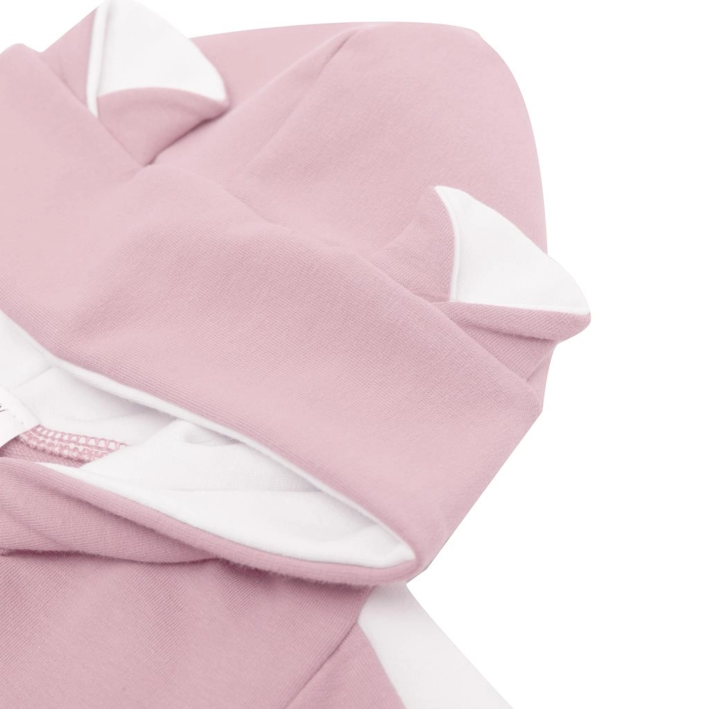 Tuta per bambini alla moda e pratica con cappuccio e simpatiche orecchiette del marchio New Baby The Best. Dispone di zip a tutta lunghezza per una facile vestibilità, polsini elastici su maniche e pantaloni e cappuccio foderato per un comfort maggiore. Realizzata in morbida felpa per il comfort quotidiano.