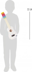 Questa chitarra in legno, leggera e resistente, è pensata per i piccoli musicisti. Grazie alle dimensioni compatte, è facile da impugnare e aiuta a sviluppare coordinazione, senso del ritmo e sensibilità musicale. Il vivace design a pois colpisce al primo sguardo e incentiva a suonare.