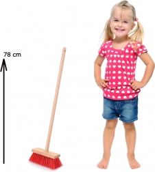 Il manico in legno levigato, dal tono naturale, si adatta perfettamente alla mano del bambino e garantisce una presa sicura e confortevole durante la spazzata.