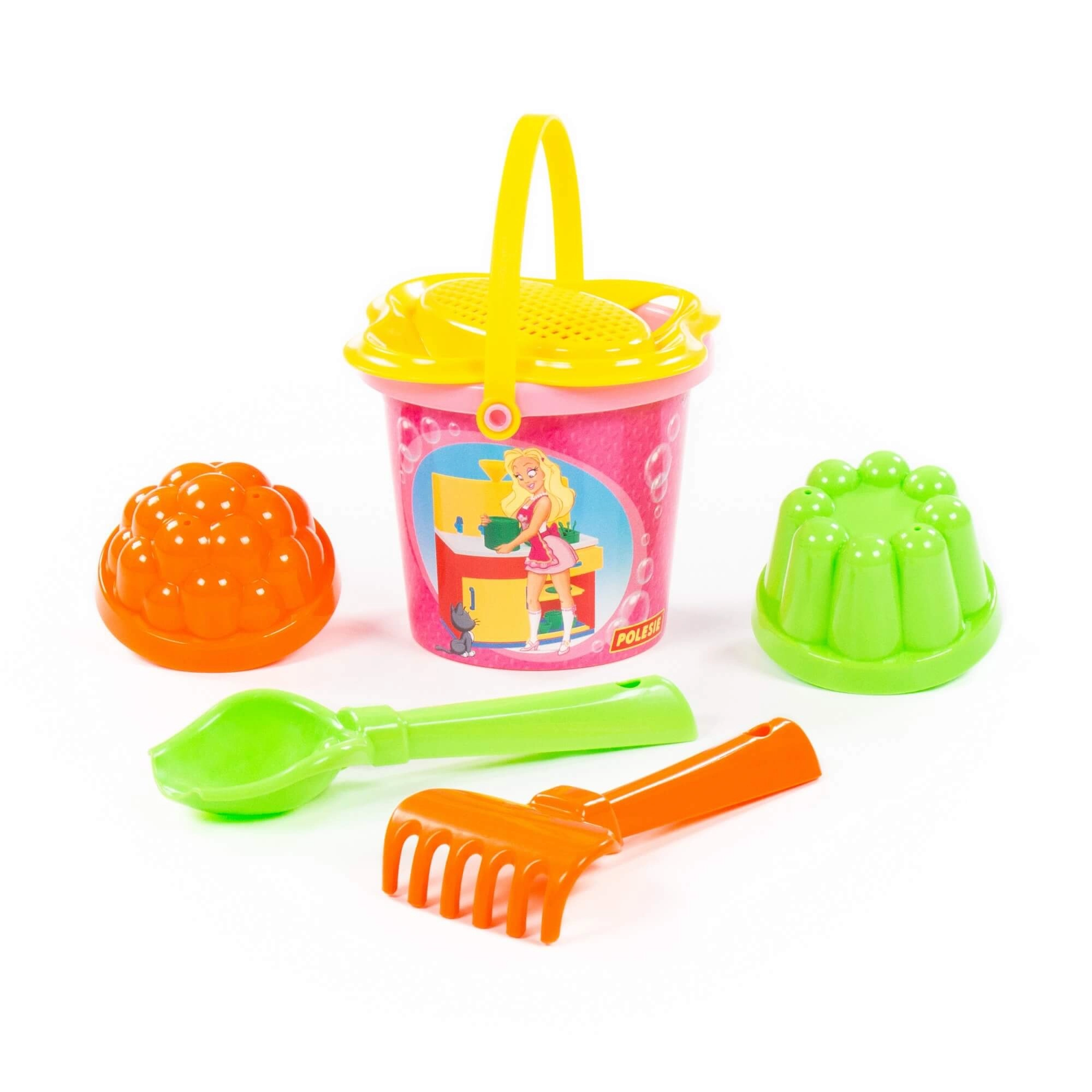 - Secchiello con setaccio, paletta, rastrellino, 2 formine