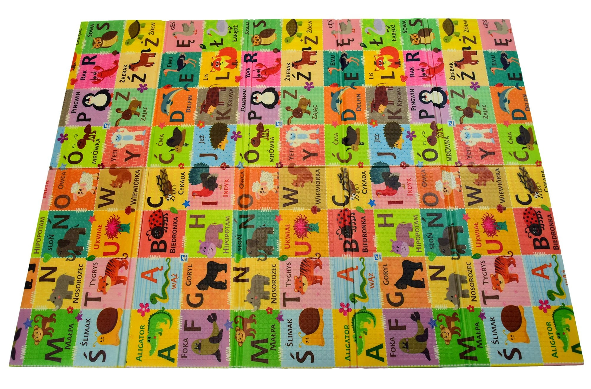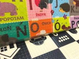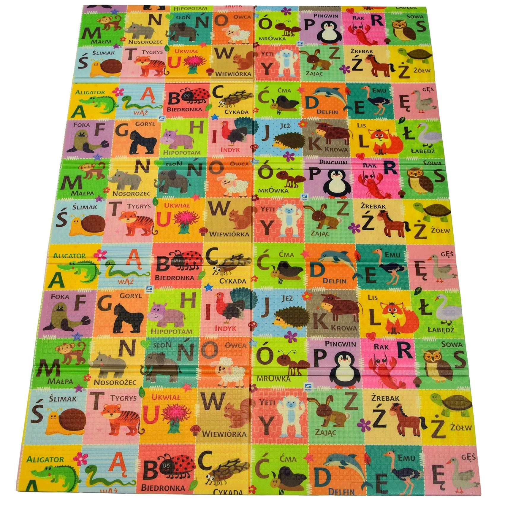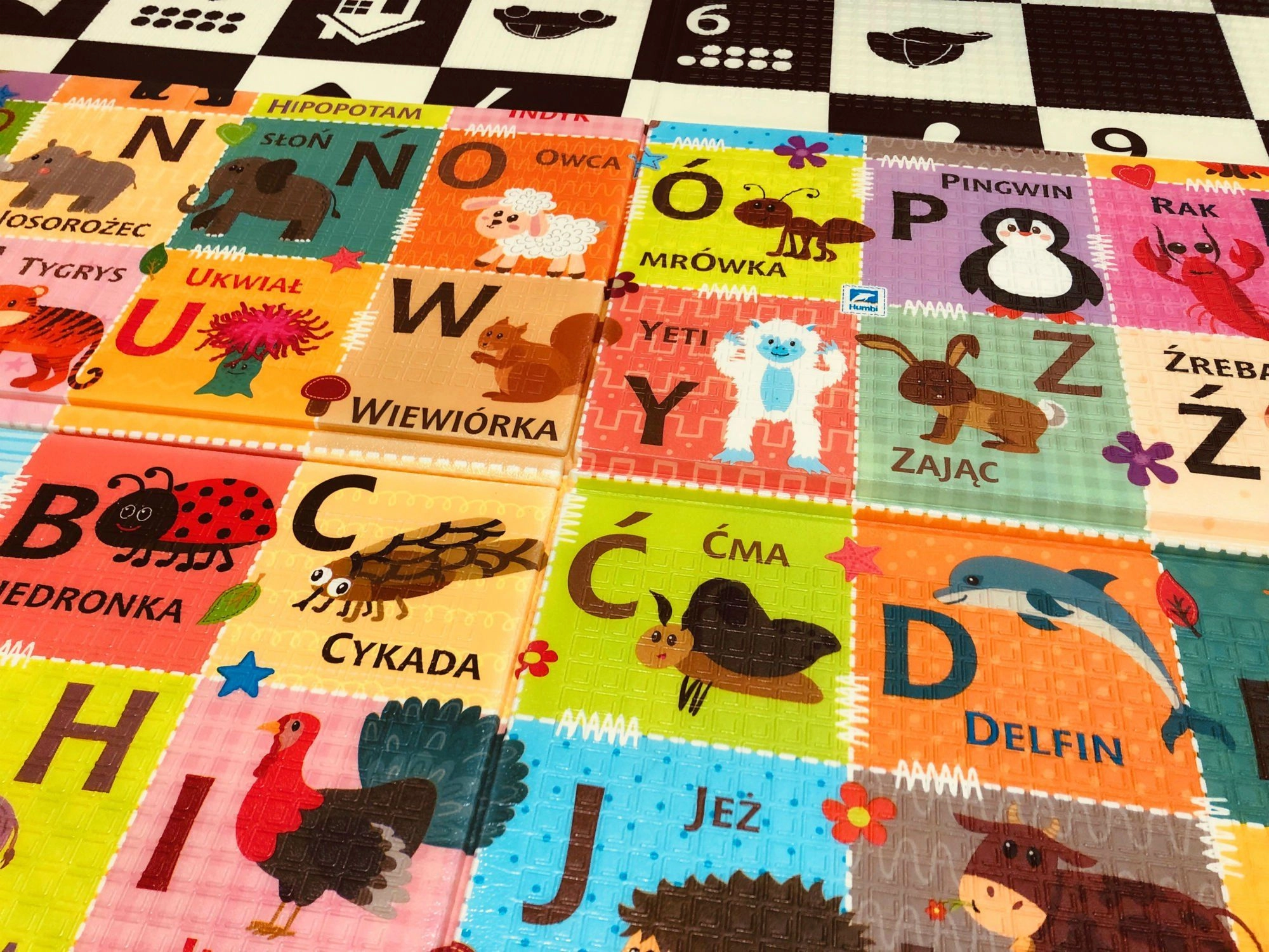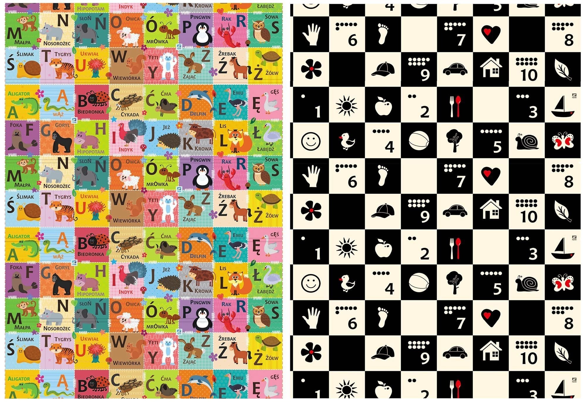Scopri un tappetino pratico e sicuro per bambini fin dalla nascita: il tappetino in schiuma HUMBI bifacciale con dimensioni 197 × 177 × 1 cm combina alfabeto polacco/illustrato, numeri con puntini e motivi ad alto contrasto per sviluppare la vista e l’apprendimento. È morbido, impermeabile, inodore, in materiale XPE, che assorbe gli urti e isola dal freddo del pavimento. Si piega e si pulisce facilmente ed è ideale per il gioco, il gattonamento e i primi passi.