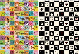 Numeri e simboli a contrasto; alfabeto colorato con animali