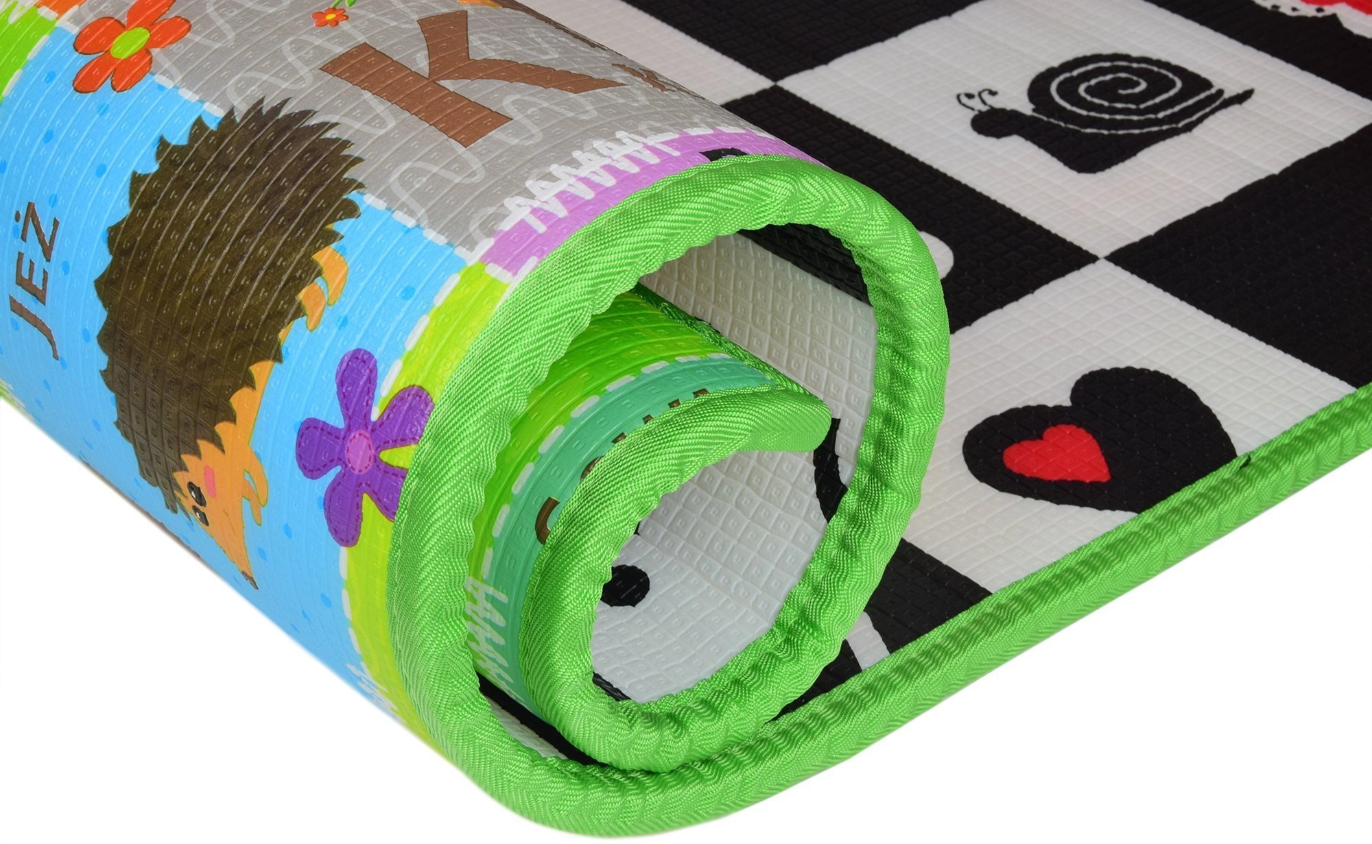 Il tappetino è realizzato in schiuma EPE sicura, atossica e inodore, priva di formammide, ftalati, PVC e BPA e conforme alle norme EN71-1, EN71-2, EN71-3 e REACH. È impermeabile, facile da mantenere e, grazie alla superficie con delicato rilievo, anche antiscivolo. Il rapido arrotolamento facilita il trasporto – borsa con cerniera inclusa.