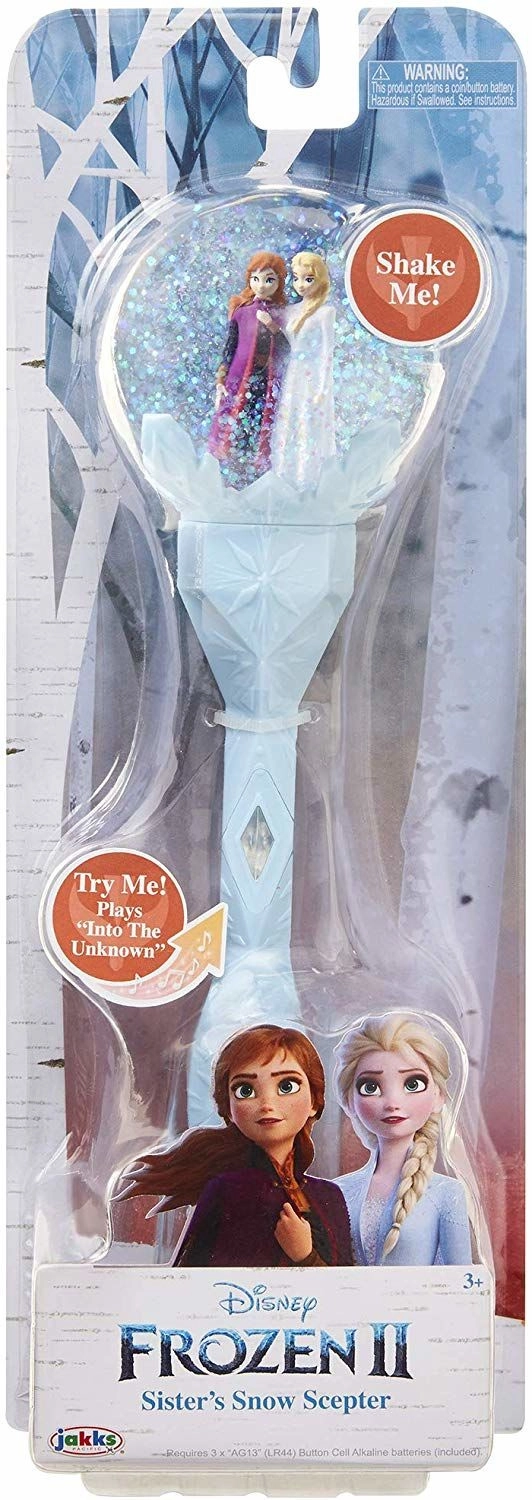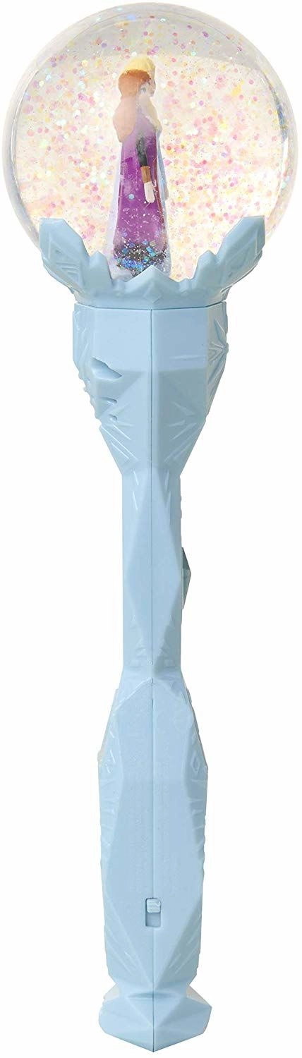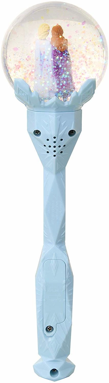 Questa bacchetta musicale nel delicato tono dell'azzurro unisce l'atmosfera magica della neve alla celebre melodia del film. Nella trasparente palla di neve fluttuano Anna ed Elsa tra il glitter in acqua, che scintilla magnificamente a ogni movimento.