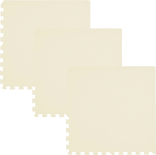 Pratico tappetino per bambini in schiuma EVA elastica composto da 3 grandi pezzi da 60 × 60 cm con 6 bordi, che creano una superficie di 180 × 60 × 1 cm in elegante colore crema. Offre uno spazio morbido e sicuro per giocare fin dai primi giorni di vita, isola dal freddo del pavimento, attenua le cadute e grazie alla superficie è antiscivolo. È impermeabile, facile da pulire e priva di ftalati, formammide, BPA e PVC. Conforme alla norma EN 71 e ai requisiti REACH.