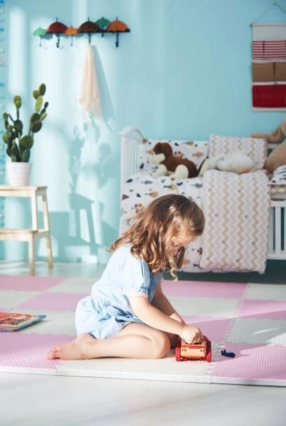 Il tappetino è impermeabile e facile da lavare: basta passare un panno umido. A differenza dei tappeti, non trattiene polvere né acari ed è delicato sulla pelle sensibile dei bambini. Il colore rosa tenue e neutro si adatta a qualsiasi interno.
