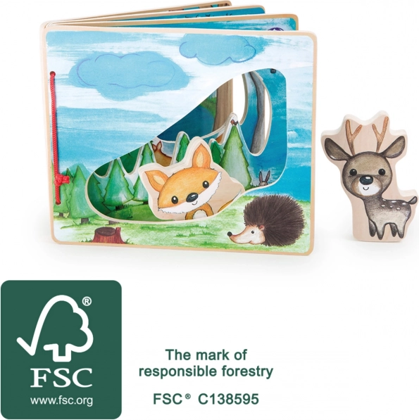 Entra nella foresta profonda con il libro interattivo in legno, che stimola l'immaginazione dei bambini. Grazie alle figure della volpe e del cervo, che aiutano a scoprire flora e fauna, ogni gioco diventa un'esperienza unica.