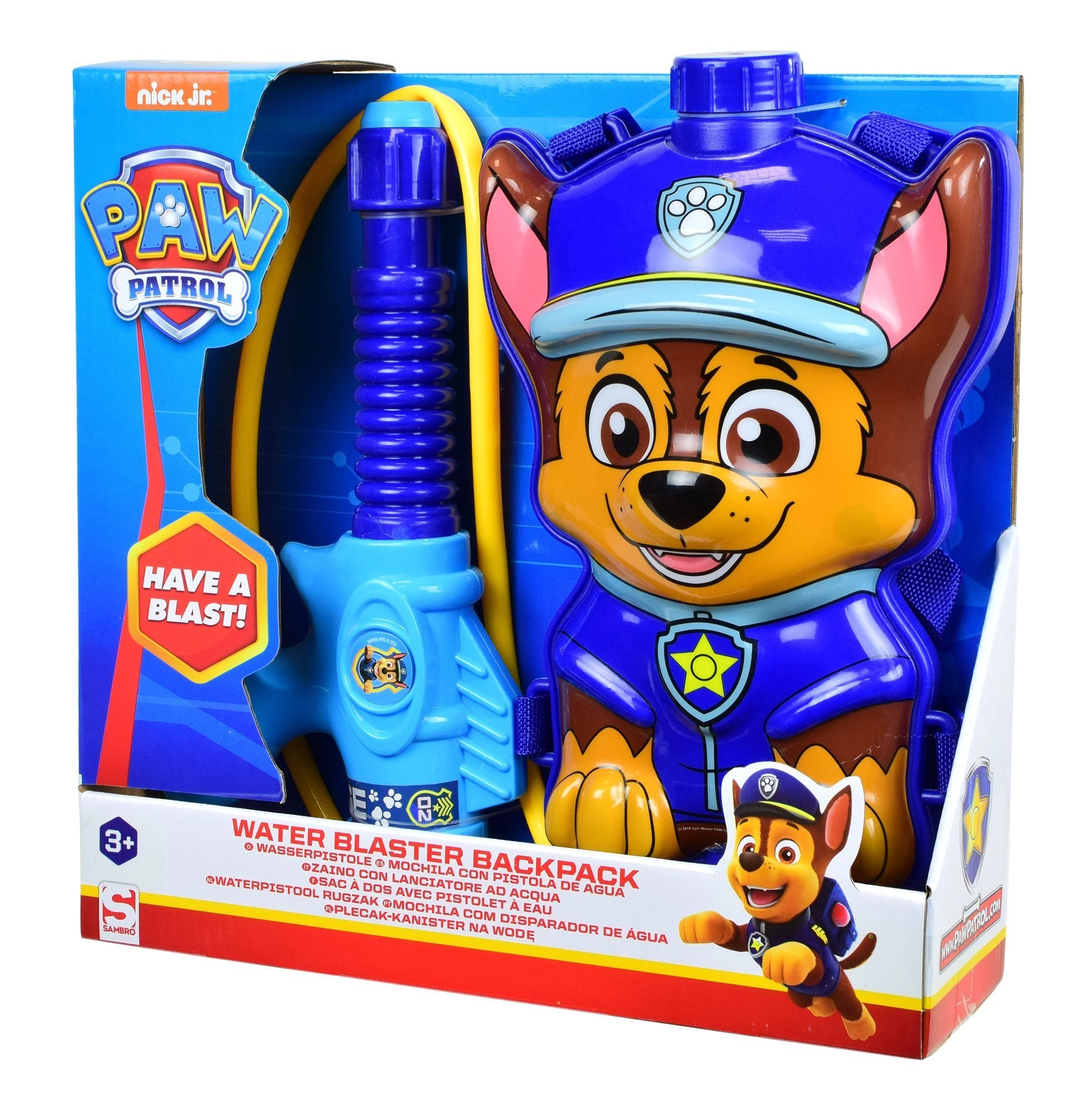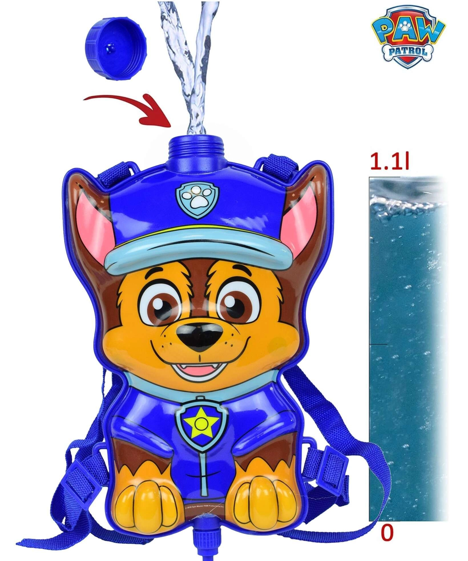 Divertente zaino ad acqua con il personaggio Chase della serie Paw Patrol per un divertimento estivo senza fine. Lo zainetto ha spallacci regolabili, apertura di riempimento richiudibile ed è collegato con un tubicino a una pistola ad acqua manuale con pompa. Ideale in giardino, in spiaggia, in piscina o al parco giochi.