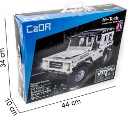 Il set CaDA Hi‑Tech è un’ottima scelta per piccoli e grandi costruttori che amano le sfide. Il fuoristrada bianco in stile Jeep offre una struttura robusta, elementi apribili e un controllo fluido tramite 2,4 GHz. Una volta assemblato, il modello raggiunge fino a 6,3 km/h e, grazie all’affidabile collegamento radio, potrai goderti una guida fluida avanti, indietro e in sterzata.