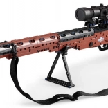 Questo set di costruzione entusiasmerà ogni appassionato di modelli tecnici e repliche storiche. Una volta assemblato, otterrai un modello dettagliato del Karabiner 98K con canna lunga, ottica e pratica tracolla. Grazie alla struttura robusta e agli snodi ben studiati, potrai godere di un controllo realistico e di un aspetto accattivante su mensola.