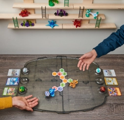 Il campo pieghevole e robusto con bordi rialzati mantiene BakuCore e miniature al loro posto. Il motivo esagonale facilita la rapida preparazione della partita e scontri chiari.