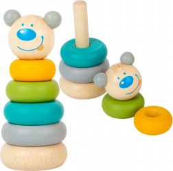 La testolina dell’orso corona la torre e stimola l’immaginazione dei bambini e il piacere di impilare.