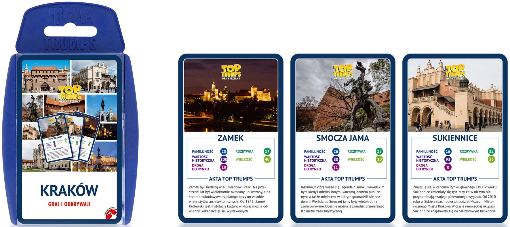 L’edizione Cracovia offre carte a tema con luoghi e curiosità che danno carattere al gioco. Grazie alla pratica custodia in plastica puoi portarlo ovunque: in gita, in vacanza o in visita.