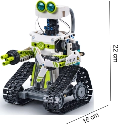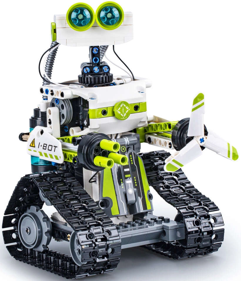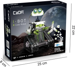 Costruisci e anima il tuo robot I.BOT del marchio CaDA. Grazie ai 434 pezzi e a una semplice app mobile, bambini e adulti si divertiranno sia a costruire che a giocare. Il robot si muove, ruota la testa e gli arti, ha occhi LED luminosi e la sua arma ruota di 360°. Puoi controllarlo con un telecomando a 2,4 GHz oppure tramite app Bluetooth con una portata superiore a 25 m.