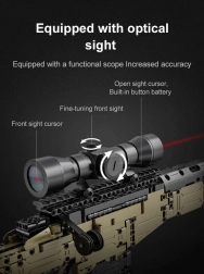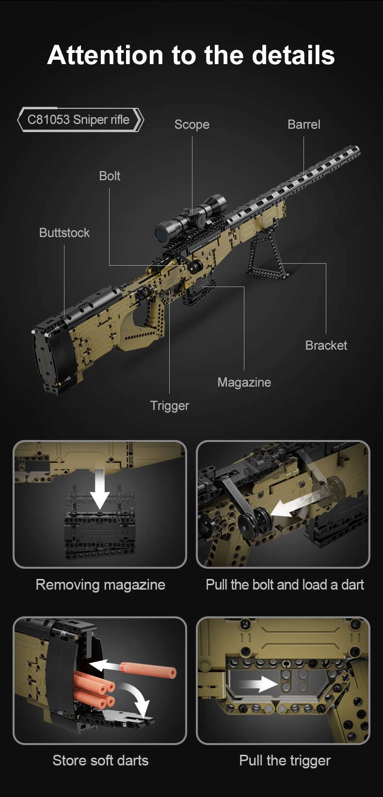 Questo set dettagliato del marchio DOUBLE EAGLE/CADA propone un progetto accattivante per ragazzi più grandi e teenager. Assemblerai un impressionante modello di fucile di precisione SNIPER RIFLE con molte parti mobili, tra cui caricatore e ottica di mira. Grazie alla cinghia inclusa, il modello è facile da trasportare.