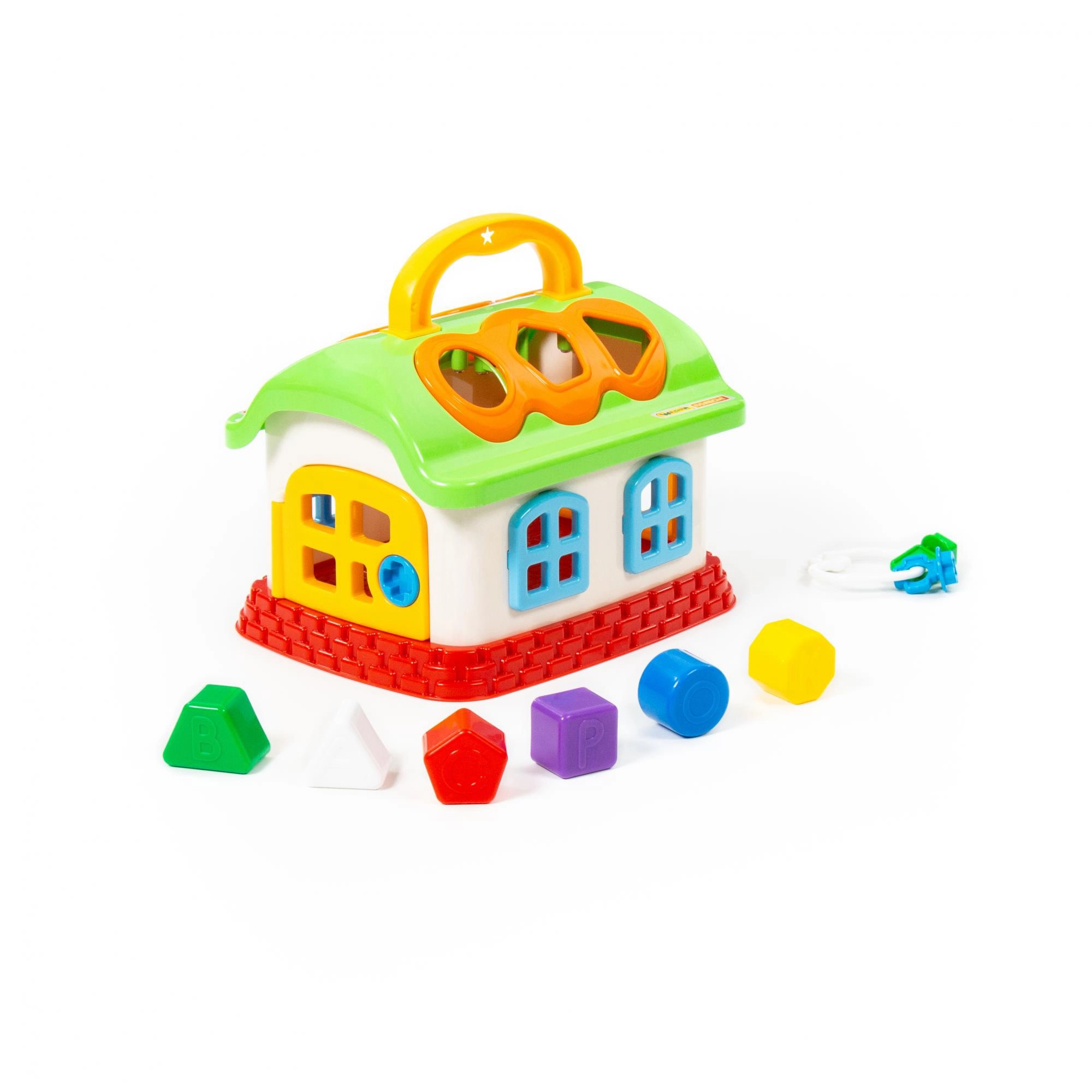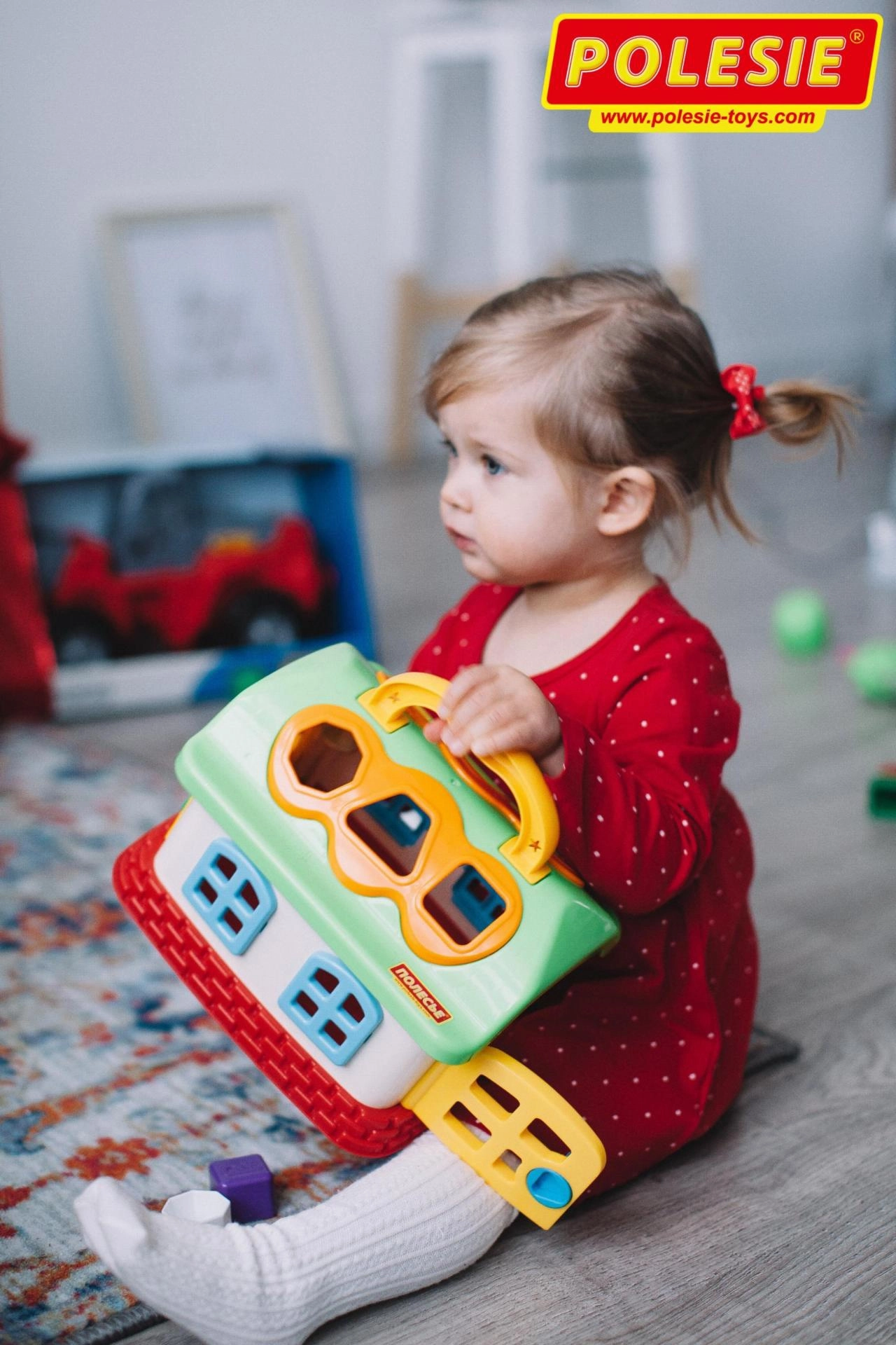 Le aperture sul tetto e sulle pareti della casetta corrispondono esattamente ai blocchi colorati: il bambino esercita la classificazione, il riconoscimento delle forme e la coordinazione occhio–mano.