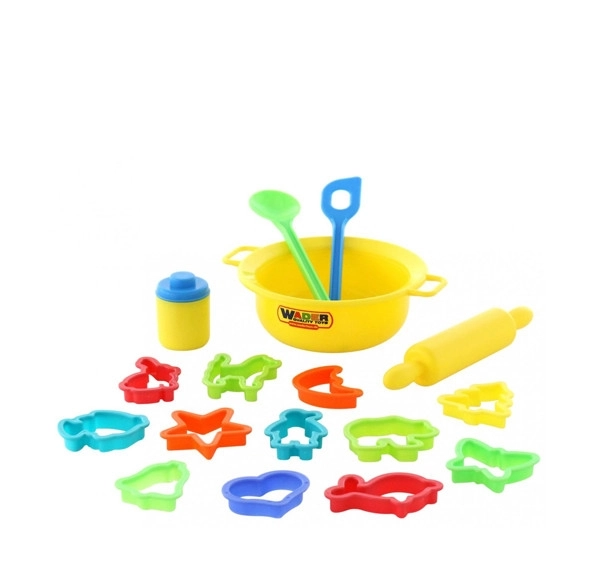 Completo set per la cottura 15 pz per piccoli e grandi pasticceri. Include un matterello da 18 cm, due fruste/mestolini, una ciotola dal diametro di 14,5 cm e 11 stampini. Il mix di colori dipende dalla disponibilità attuale in magazzino.