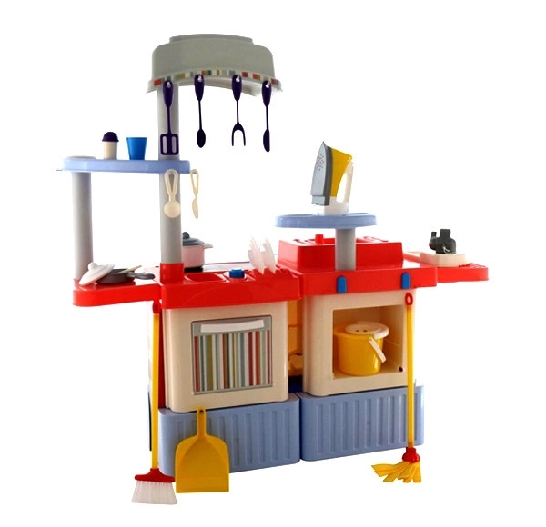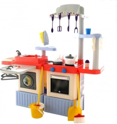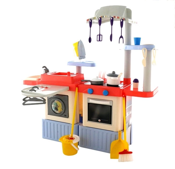 Nella confezione trovi tutti gli accessori illustrati: stoviglie, utensili e strumenti per il bucato e le pulizie. I bambini possono iniziare subito a cucinare, lavare e stirare.